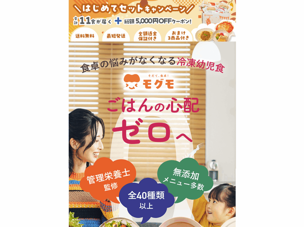 【PR】モグモ 今回ご紹介するのは乳幼児向けの冷凍食品です!◆おすすめポイント◆・管理栄養士が監修し、乳幼児期に必要な栄養素をカバー!・無添加のメニューが9割以上!・冷凍で届くためレンジで温めるだけ!簡単で手間いらずで時短になる!・子どもも喜ぶかわいいパッケージで商品をお届け!・希望のお届け周期や食数を選べる!プランはいつでも変更できて、予定に合わせてお届けスキップも可能! ◆こんな方におすすめ◆・乳幼児の子どもがいる・家事や仕事と育児の両立が大変で、自分の時間がなかなか取れない・忙しいが子どもの食事に手を抜きたくないそんな親御さんにおすすめです!☆独自の冷凍技術で長期間保存できるようになっているため、冷凍庫にあるだけで心の余裕が生まれます!☆月齢に合わせて食事を考えるのが大変。そんなときには管理栄養士が無料で相談サポートをしてくれます。☆市販の食事に罪悪感や抵抗感があるからこそほとんど無添加素材を使った冷凍食品が魅力!☆実際にお子さんがいる方々が商品開発に携わっているため、親御さん目線、またお子様目線でも工夫されております! 詳細はこちらをクリック 初回お届け一例 ボリューム満点! 美味しいだけじゃなく、ボリューム満点のじゃがいもコッロケ!ほんのり甘みがあるので食べやすい! 栄養満点! ふわふわのオムライス!巻くのが難しいオムライスもふわふわで美味しくいただけます! モグモA.O※当サイトはアフィリエイトプログラムを利用し宣伝目的で作成しております。