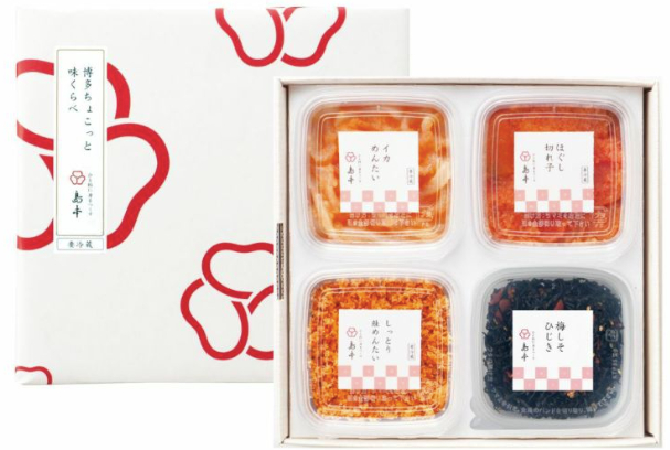 「まずは島本の人気商品を試したい」「色々な味を少しずつ味わいたい」。そんなお声から生まれた『博多ちょこっと味くらべ』。島本定番の味を楽しめる「無着色ほぐし切れ子」をはじめ、和え物、ふりかけなど人気の商品をちょこっとサイズで詰め合わせました。